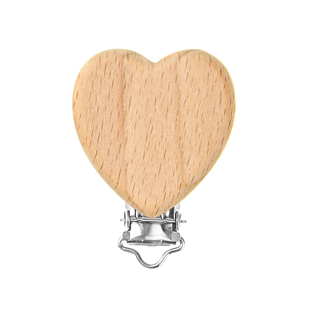 Pinza chupetero madera corazón para Bebé